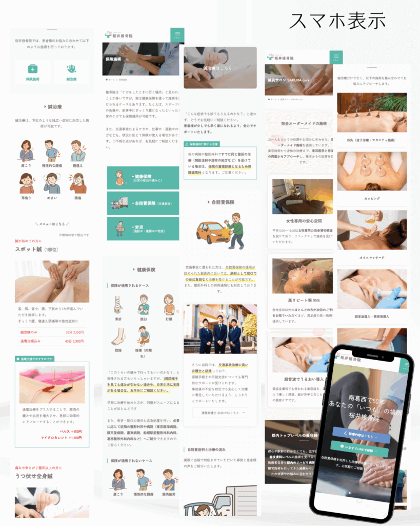 創業50年以上、地元に根ざした接骨院様だからこそ、その歩みやお客様との関係性を丁寧にヒアリングし、サイト全体に“安心感”が伝わるよう設計しました。